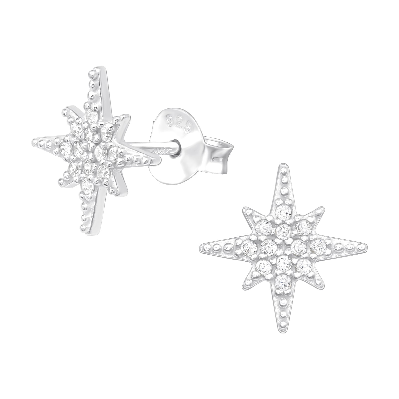 Pair of 925 sterling silver stud earrings featuring CZ crystals, complete with butterfly backs.